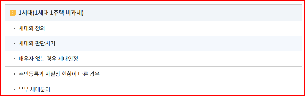 주택 소유 여부를 세대 단위로 판단합니다. 동일한 세대에 속한 사람 중 한 명이라도 주택을 추가로 보유하고 있다면 1가구 1주택 요건에서 벗어날 수 있습니다. 1가구 1주택 비과세 대상을 확인해 보시기 바랍니다.