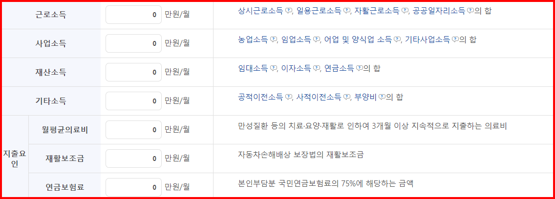 가구원수, 거주지 등의 기본정보와 소득 및 재산 정보, 의료급여 수급 여부를 선택하면 지원금 대상 여부를 쉽고 빠르게 확인할 수 있습니다.